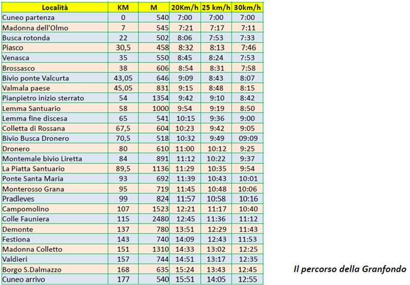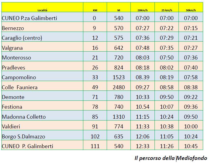 Le immagini allegate riportano le tabelle di marcia relative alla manifestazione nei comuni interessati al passaggio.