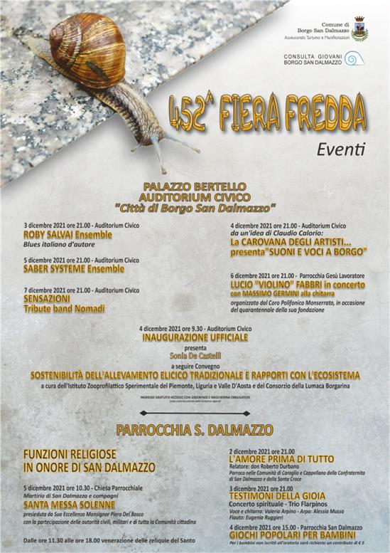 Descrizione Per tutta la giornata di domenica 5 dicembre 2021 avrà luogo il tradizionale mercato straordinario nel centro storico cittadino. Nella mattinata del 5 dicembre si terrà il mercato nazionale delle chiocciole sul piazzale ex Bertello.