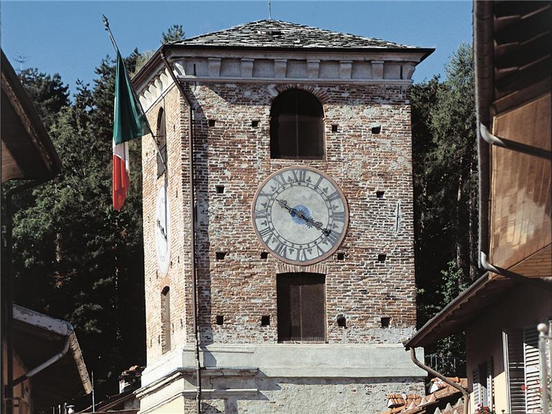 Antica "torre-porta" eretta a difesa del reductum castellarium,è costruita in pietra e mattoni. All'inizio del secolo XIX venne dotata di un portico che ospitò per breve periodo la sede comunale.