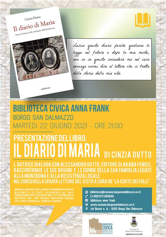 Martedì 22 giugno 2021 - ORE 21.00 - Biblioteca Civica