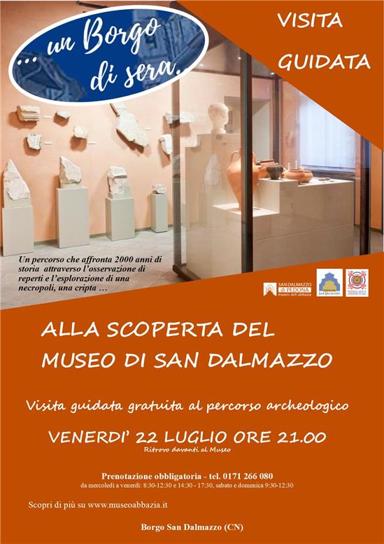 Venerdì 22 luglio, in occasione della seconda serata della rassegna estiva “un Borgo di sera”, il Museo dell’Abbazia di San Dalmazzo sarà aperto.