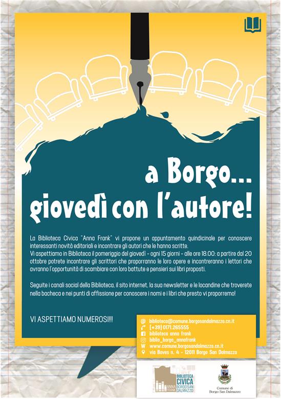 L’Assessorato alla Cultura vi invita alla nuova rassegna "A BORGO. . . GIOVEDÌ CON L’AUTORE".